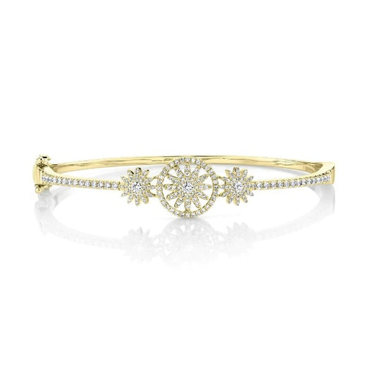 14K Gold 0.76CT Diamond Starburst Bangle Bracelet Womens Natural Round Cut