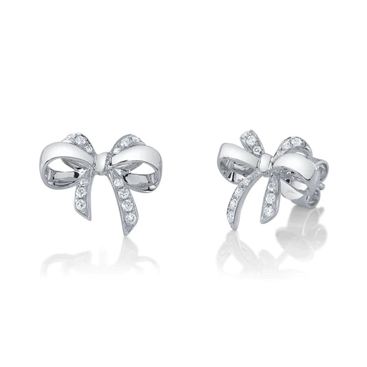 14K Gold 0.20 CT Diamond Bow Ribbon Earrings.