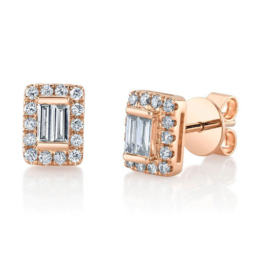 14K Gold 0.10 CT Baguette Diamond Huggie Earrings