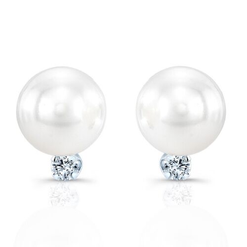 14K White Gold Akoya Pearl Diamond Stud Earrings