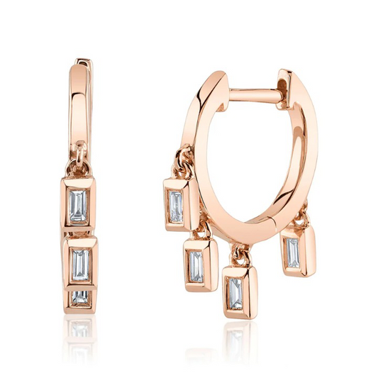 14K Gold Diamond Huggie Shaker Dangle Earrings