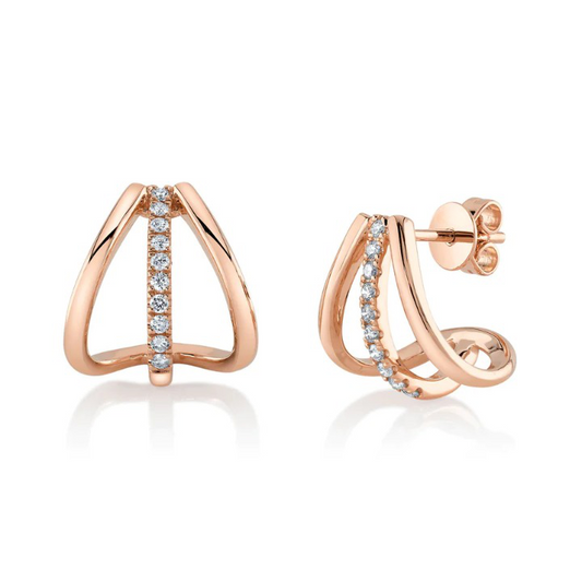 14K Gold Diamond Bezel Semi-Hoop Earrings