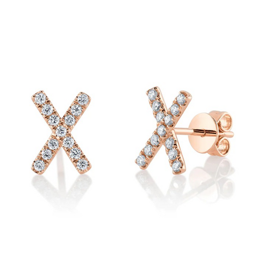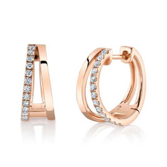 14K Gold Diamond Bridge X Crossover Hoop Earrings
