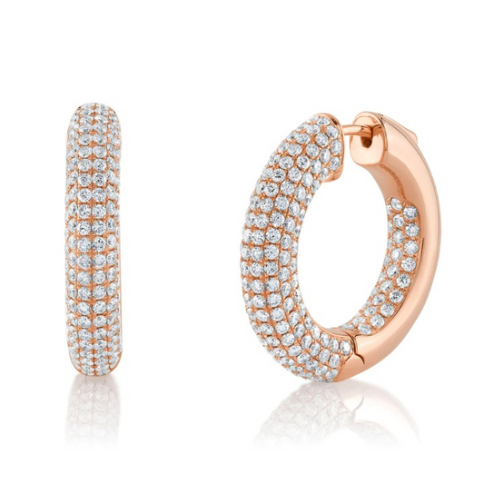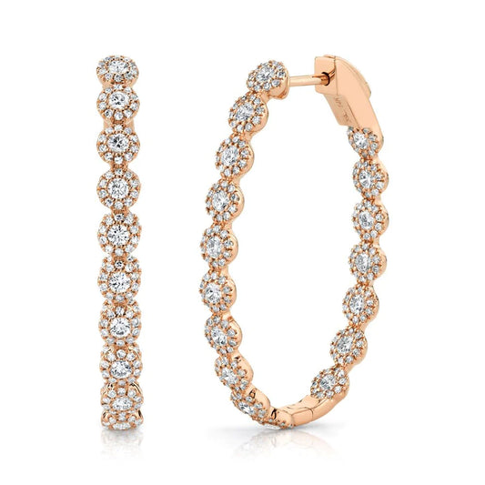 14K Gold Diamond Inside Out Oval Hoop Earrings