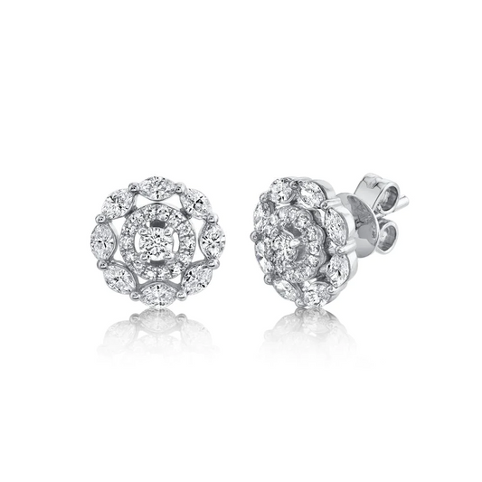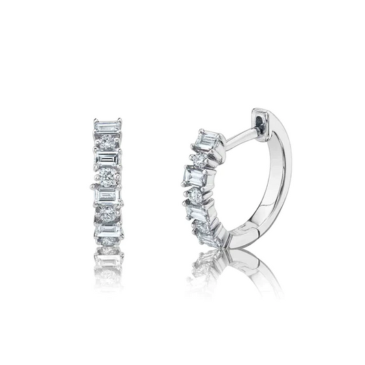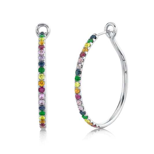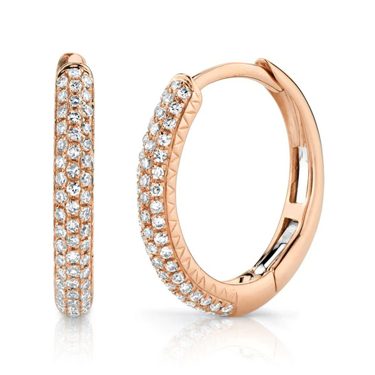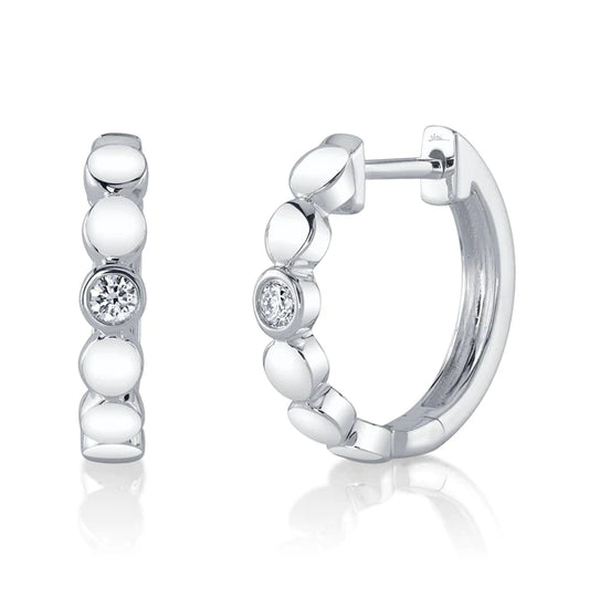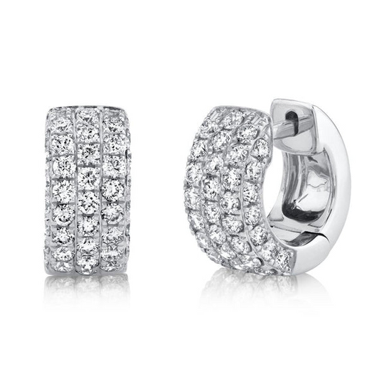 14K White Gold Diamond Pave Hoops Earrings 0.21 CT