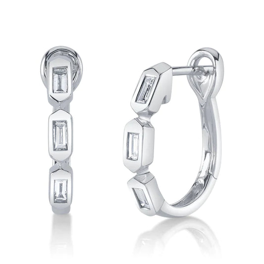 14K Gold Baguette Diamond Oval Hoop Earrings