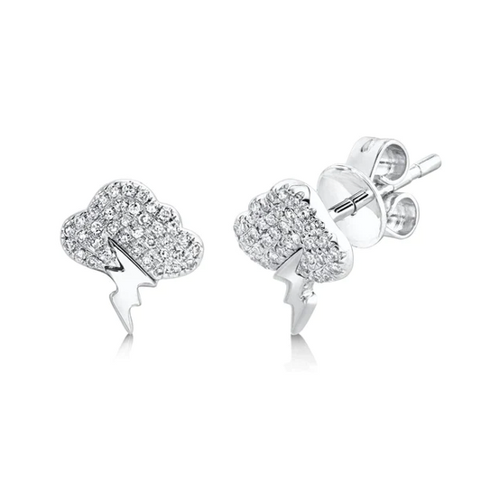 14K Gold Diamond Storm Cloud Lightning Earrings