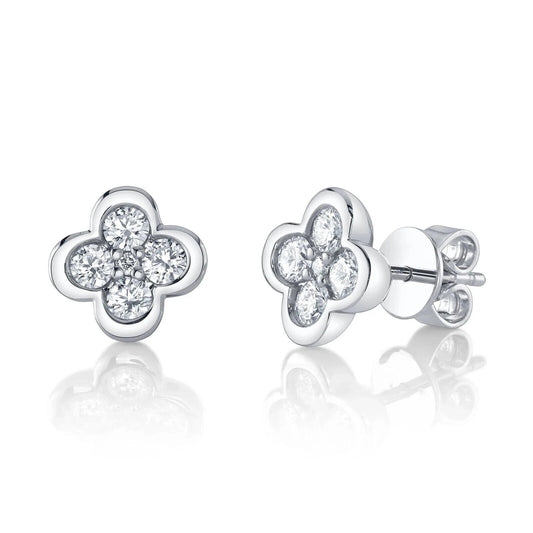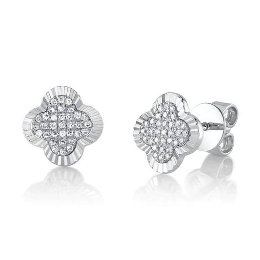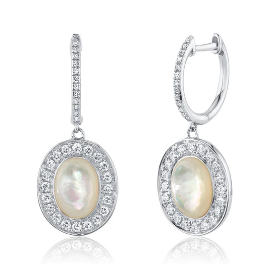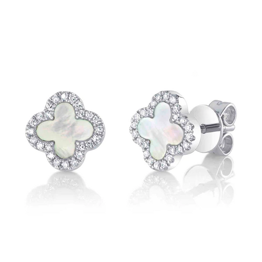 14k Gold Diamond Mother Of Pearl Clover Earrings