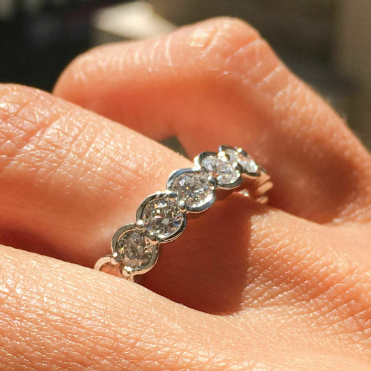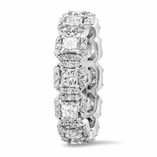 18K White Gold 1.73 CT Princess Round Eternity Diamond Ring Halo Band Natural Certified
