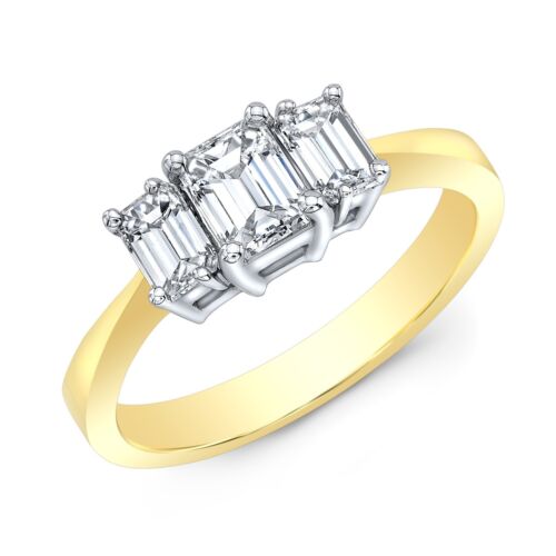14K Gold 1.00 CT Three-Stone Emerald-Cut Engagement Ring