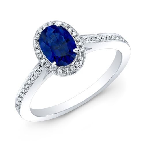 14K White Gold 1.35 CT Oval Sapphire Diamond Solitaire Ring