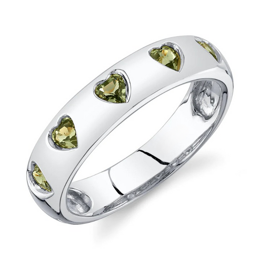 14K Gold 0.62 CT Green Sapphire Heart Band Ring