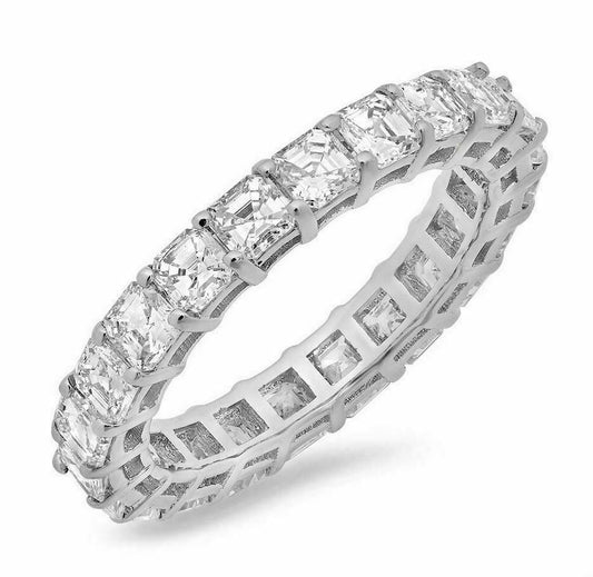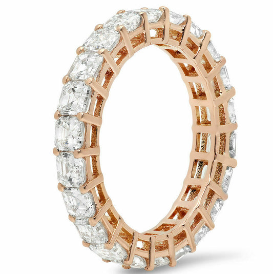 18K Gold 3.95 CT Ascher Cut Diamond Eternity Ring Engagement Anniversary Band VS1