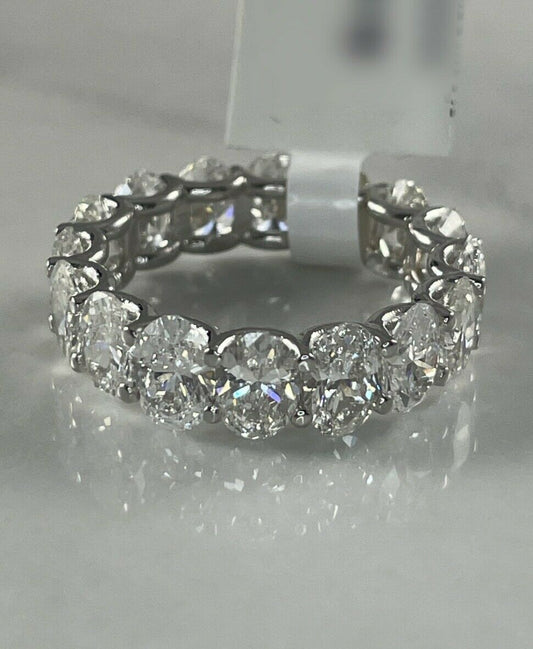 18K Gold 6.62TCW Oval Cut Diamond Eternity Ring Certified Natural F VS2