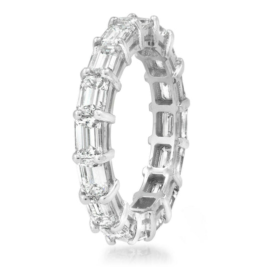 18K White Gold 6.14 CT Emerald Cut Diamond Eternity Ring Natural Certified Wedding