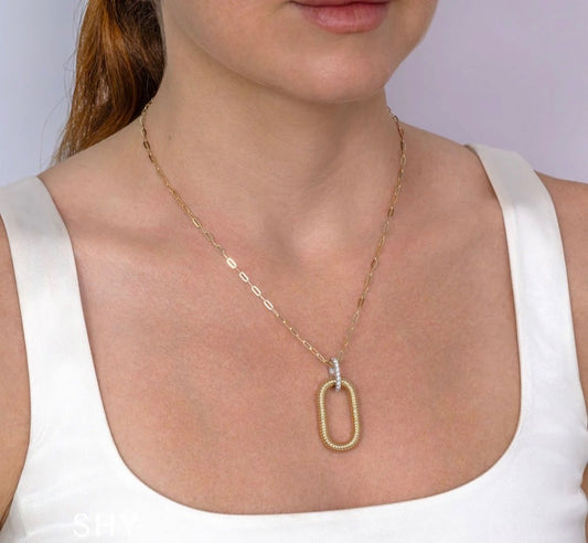 14K Gold 0.50CT Diamond Paper Clip Link Heart Necklace Round Cut Pave set