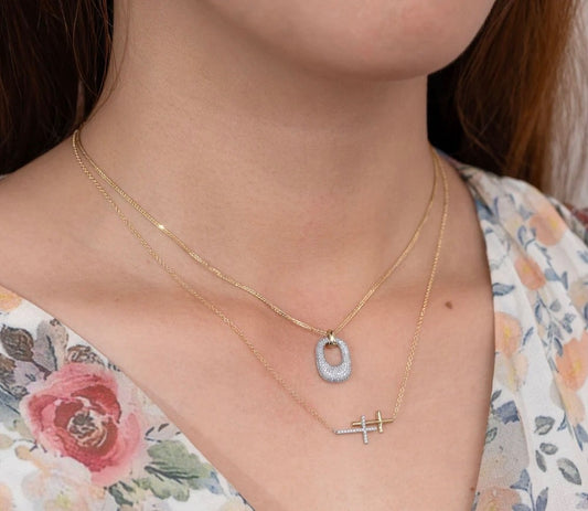 14K Gold 0.50CT Pear Shape Pave Diamond Pendant Double 2 Row Chain Necklace