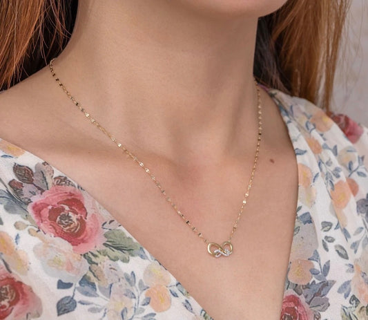 Diamond Infinity Necklace 14K Yellow Gold 0.05CT Natural Sparkle Chain