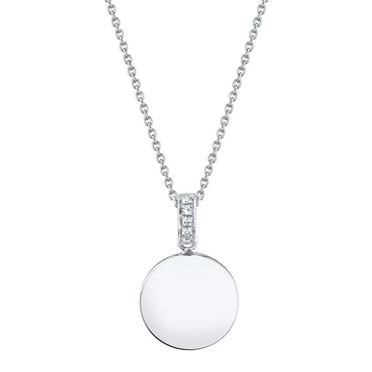 14K Gold Diamond Circle Disc Charm Pendant Necklace