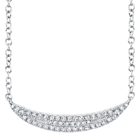 14K Gold Diamond Crescent Curved Pendant Necklace