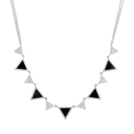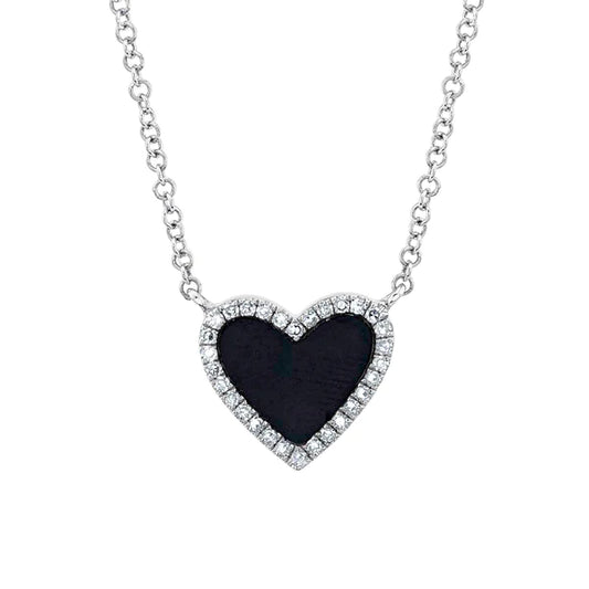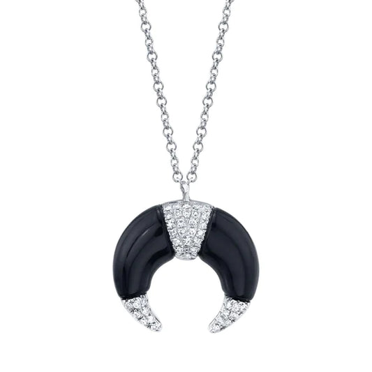 14K Gold Diamond Crescent Moon Black Onyx Necklace