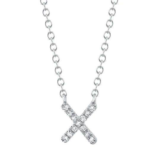 14K Gold Letter X Diamond Initial Pendant Necklace