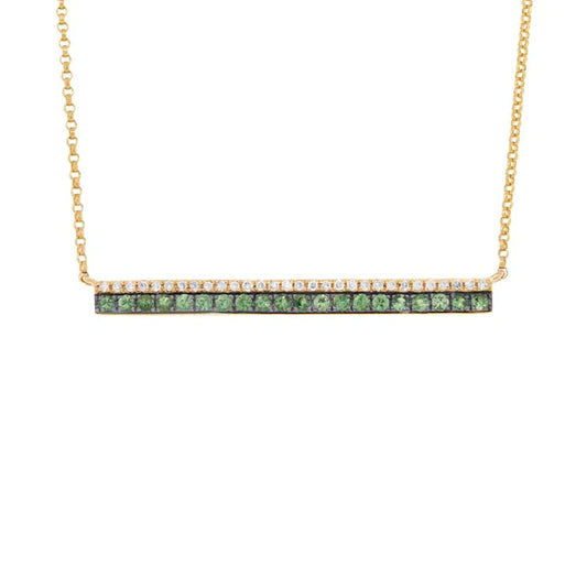 14K Gold Green Garnet Diamond Bar Pendant Necklace