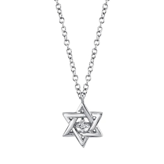 14K Gold Diamond Star Of David Necklace