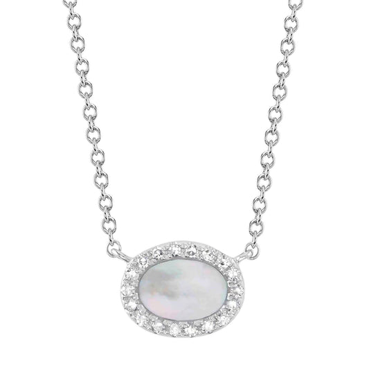 14K Gold Diamond Mother of Pearl Oval Necklace