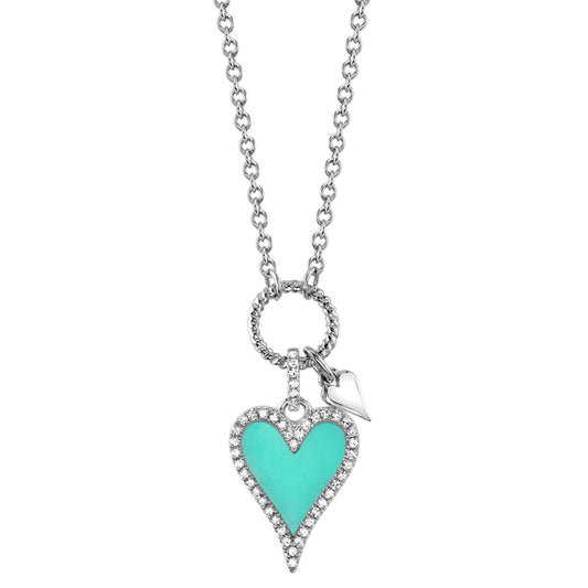 14K Gold Diamond Heart Turquoise Necklace