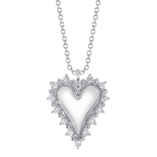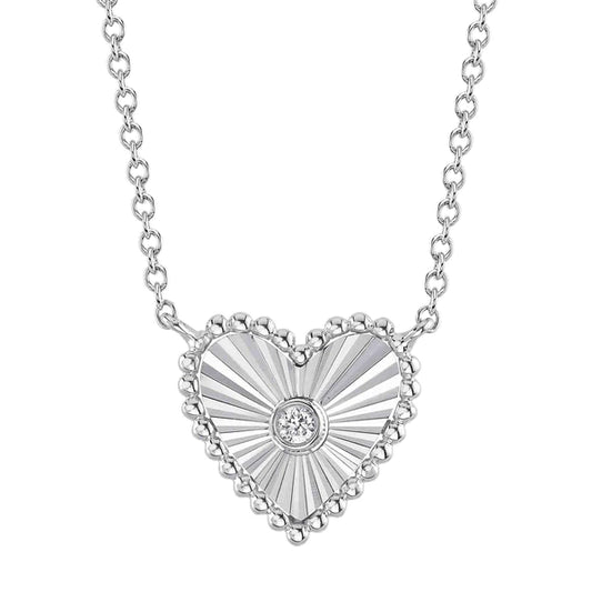 14K Gold Diamond Heart Necklace Fluted Pendant Necklace