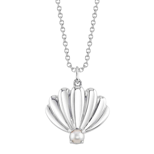 14K Gold Pearl Seashell Pendant Necklace
