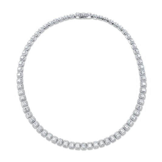 14K Gold Emerald Cut Diamond Tennis Necklace