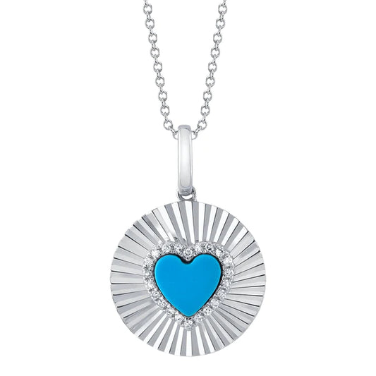 14K Gold Diamond Turquoise Heart Disc Necklace