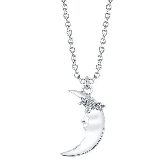 14K Gold Diamond Shooting Star & Crescent Moon Necklace