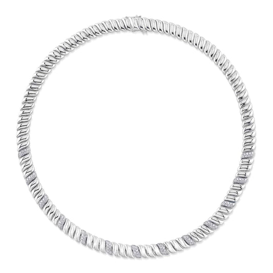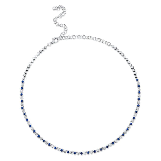 14K Gold Diamond Blue Sapphire Bezel Tennis Necklace