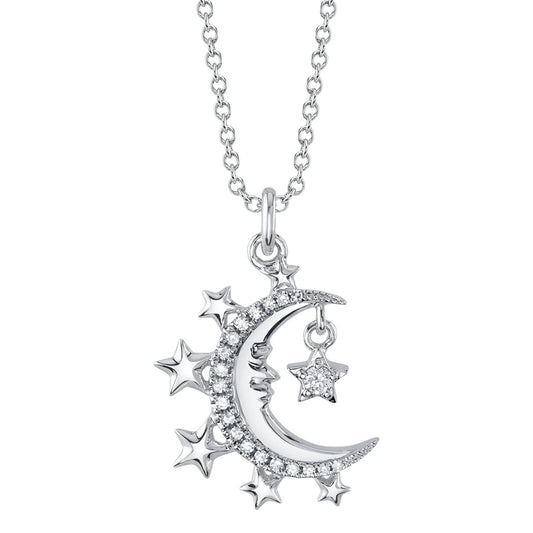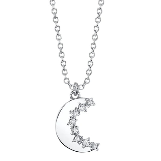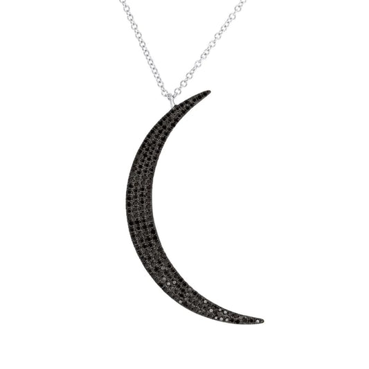 14K Gold 0.50 CT Black Diamond Crescent Moon Necklace