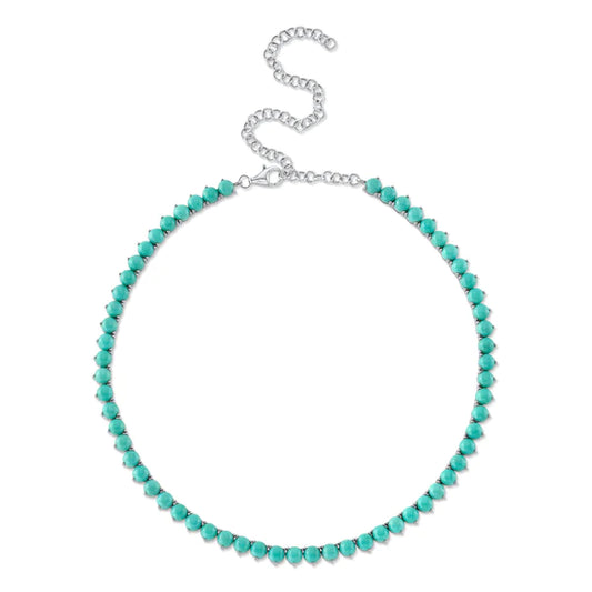 14K Gold 35.91 CT Turquoise Tennis Necklace