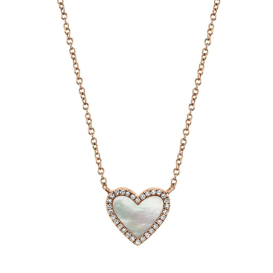 Mother Of Pearl Diamond Heart Pendant Necklace 14K Yellow Gold0.65 TCW Natural
