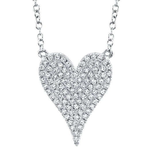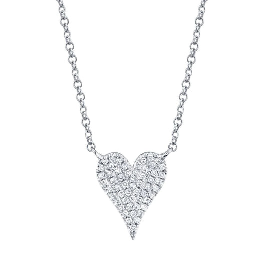 Small Tiny Diamond Heart Pendant Necklace 14K White Gold 0.05CT Womens Children