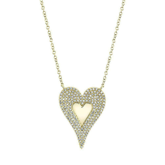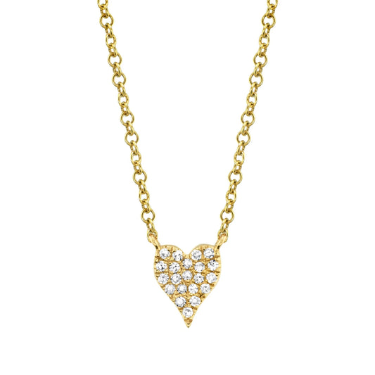 14K Gold 0.20CT Diamond Heart Pendant Necklace Pave Round Valentines Day