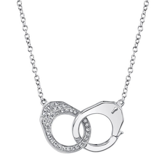 Diamond Handcuff Necklace 14K Yellow Gold Pendant 0.08CT Round Cut Natural Women