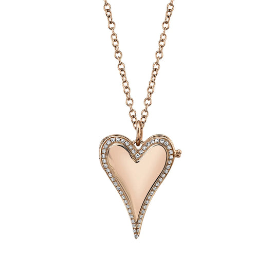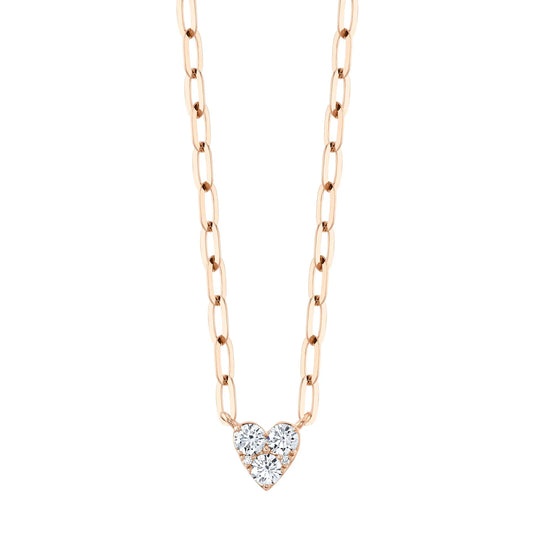 Diamond Heart Pendant Necklace 14K Rose Gold Round Cut Pave Love 0.11 CT V Day