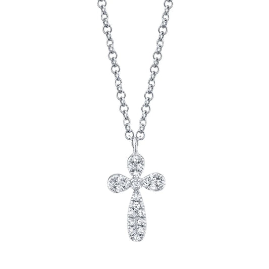 Small Diamond Cross Pendant Necklace 14K Yellow Gold Pave 0.05CT Round Cut
