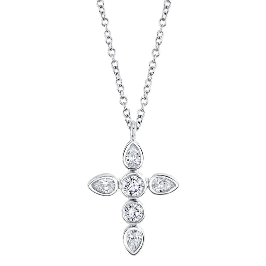 Diamond Cross Necklace 14K Yellow Gold Pear Round 0.42CT Natural Womens Pendant