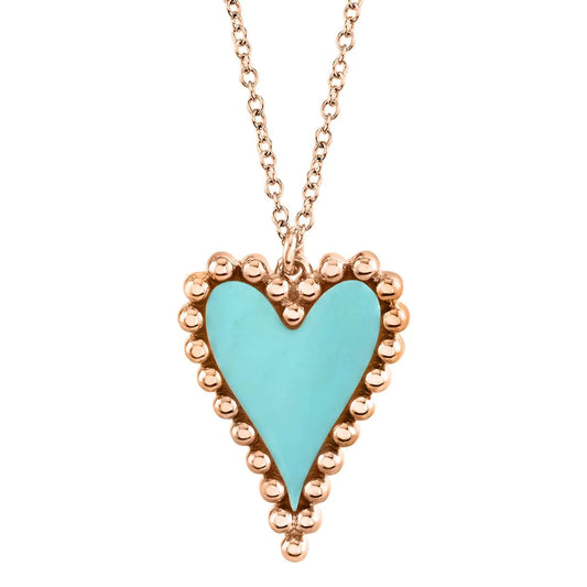 14K Yellow Gold Turquoise Heart Pendant Necklace Beaded Womens Adjustable Chain