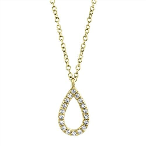 14K White Gold Diamond Pear Teardrop Pendant Necklace Open 0.06CT Round Womens