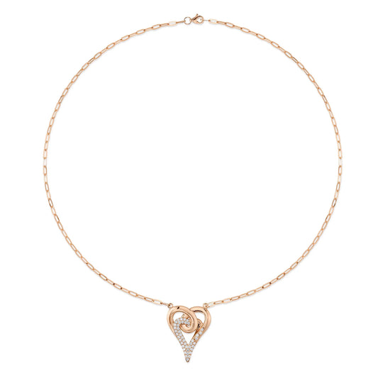 14K Gold 0.52CT Diamond Heart Pendant Necklace Paper Clip Chain Round Cut