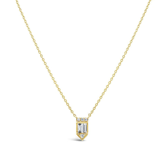 14K Gold 0.22CT Baguette Diamond Pendant Necklace Women's Natural