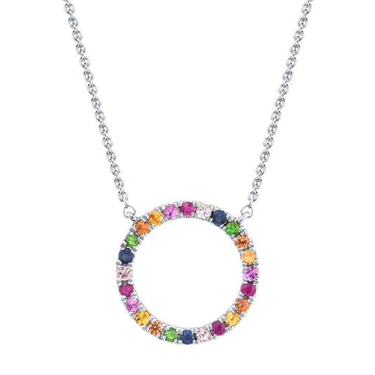 14K Gold 0.29 CT Multi Color Sapphire Gemstone Open Circle Pendant Necklace